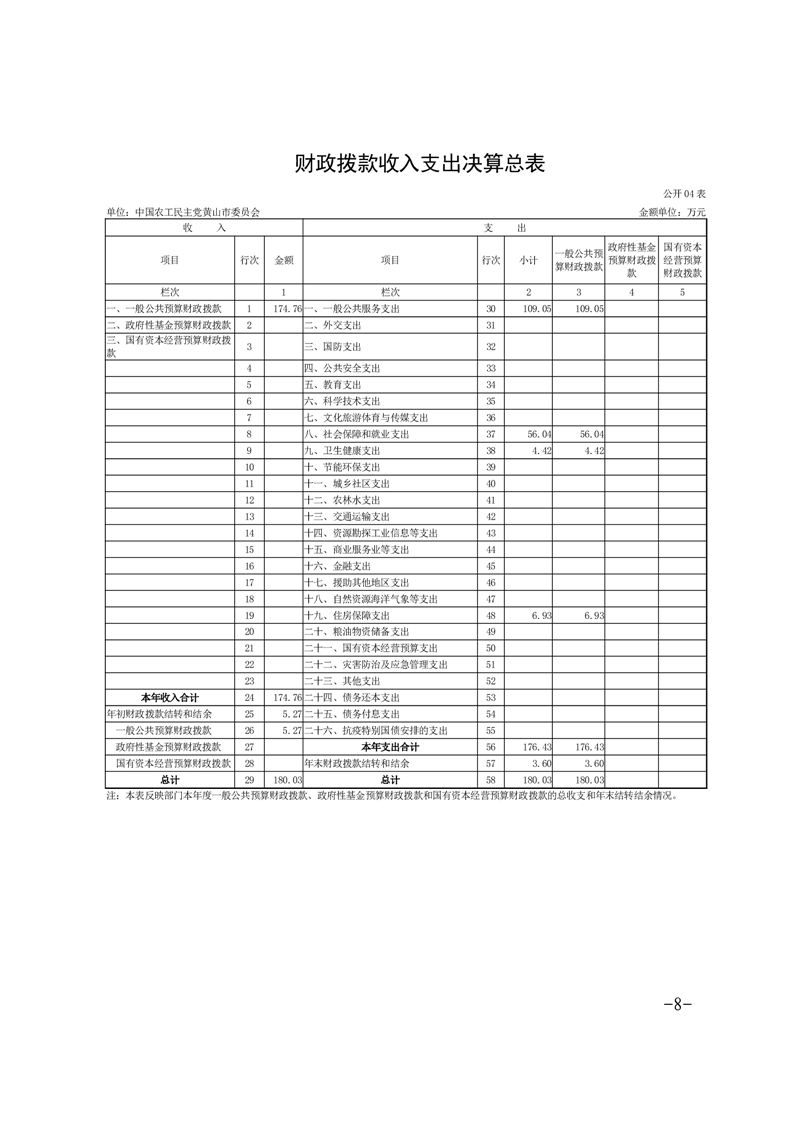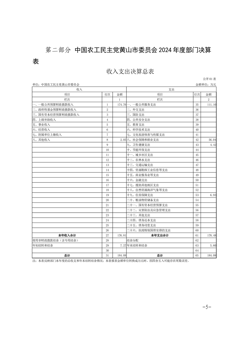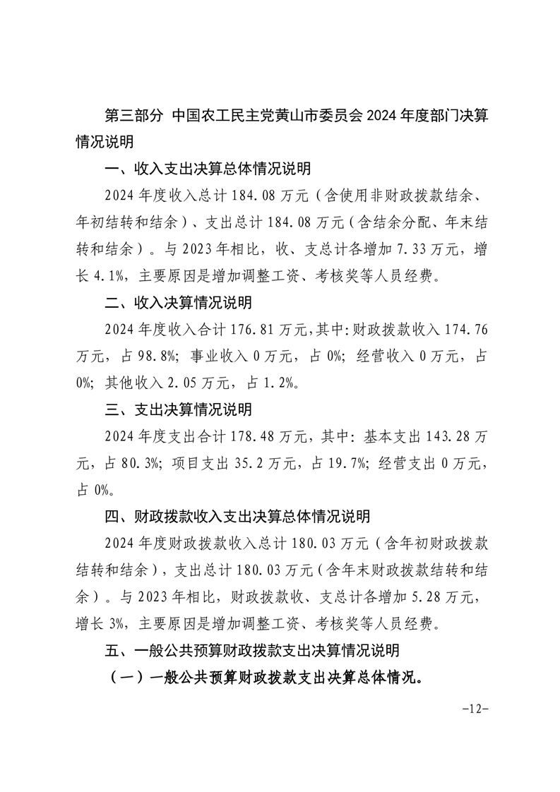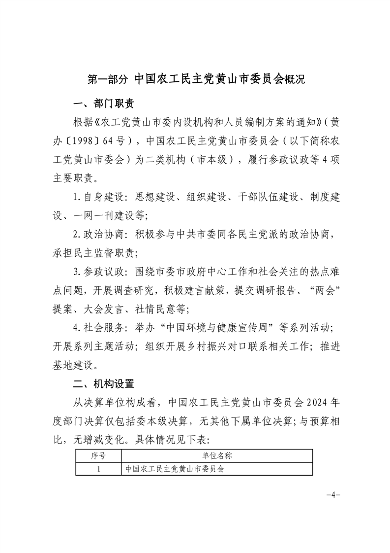 中国农工民主党黄山市委员会2024年度部门决算公开